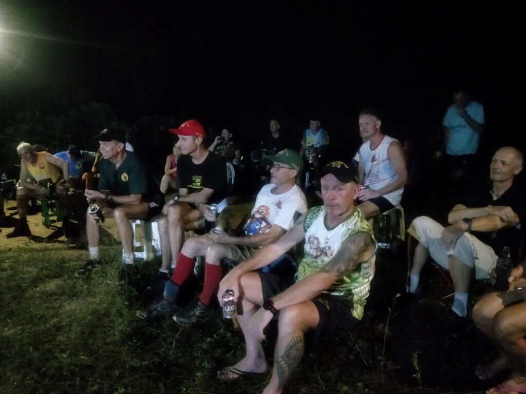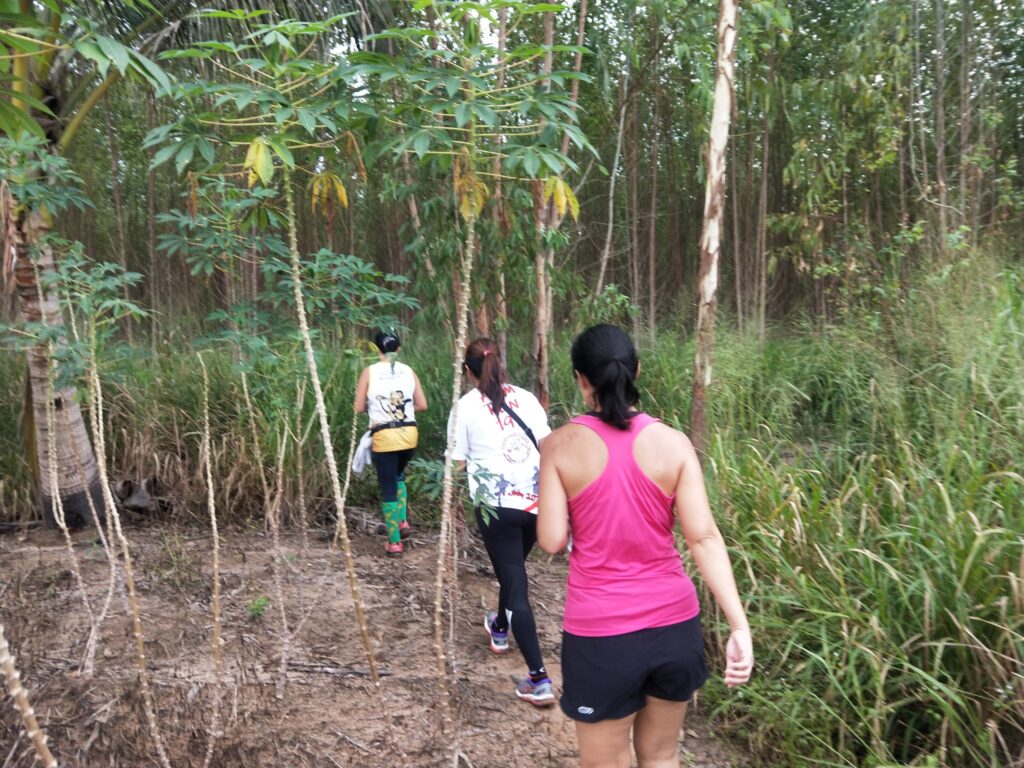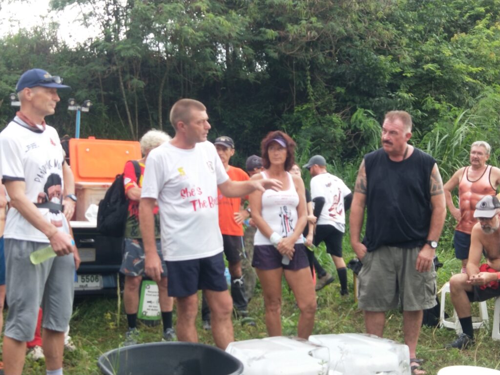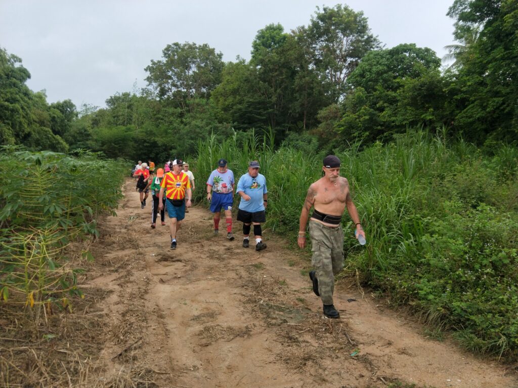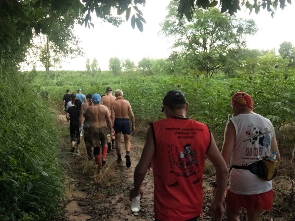 The first Saturday Jungle run was a complete success! With over 60 people in attendance, the hash walkers and runners set out on a jungle trek accross muddy trenches, pineapple fields, and flooded creeks. The delicious and plentiful Pad Thai, made by our very own Cookie Monster and distributed by Lost Cause and her team, was the perfect dinner after such an adventure.