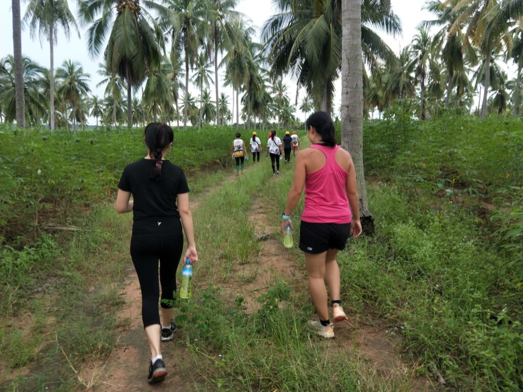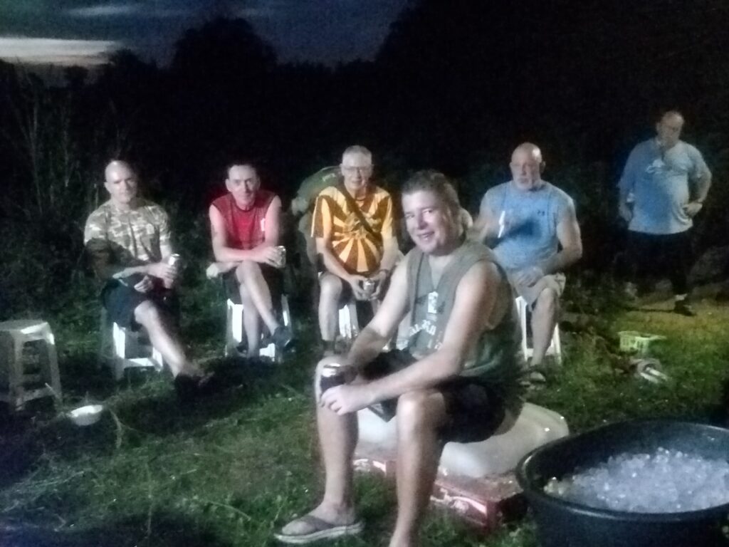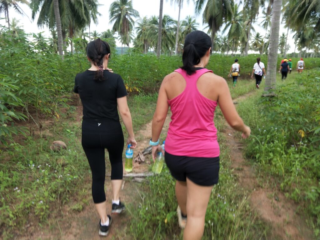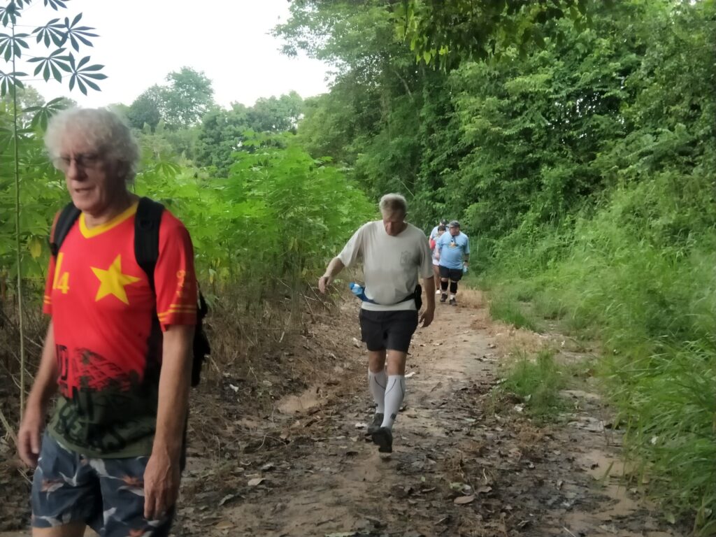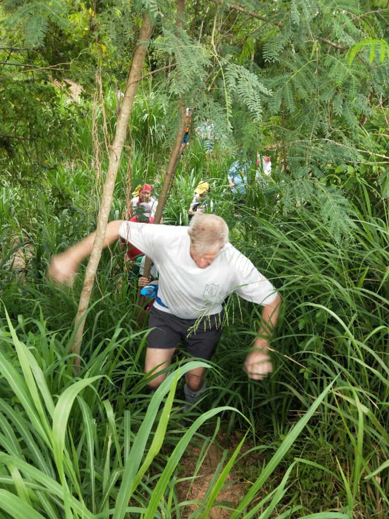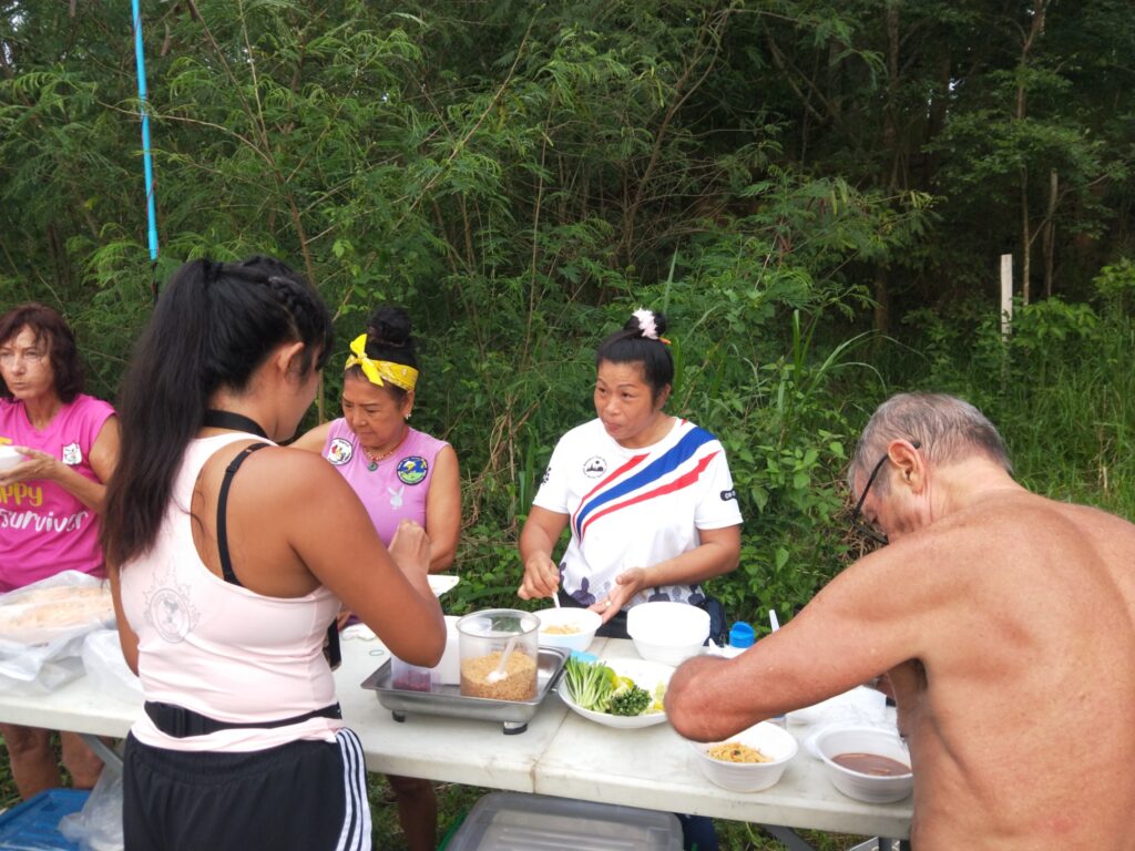 The first Saturday Jungle run was a complete success! With over 60 people in attendance, the hash walkers and runners set out on a jungle trek accross muddy trenches, pineapple fields, and flooded creeks. The delicious and plentiful Pad Thai, made by our very own Cookie Monster and distributed by Lost Cause and her team, was the perfect dinner after such an adventure.